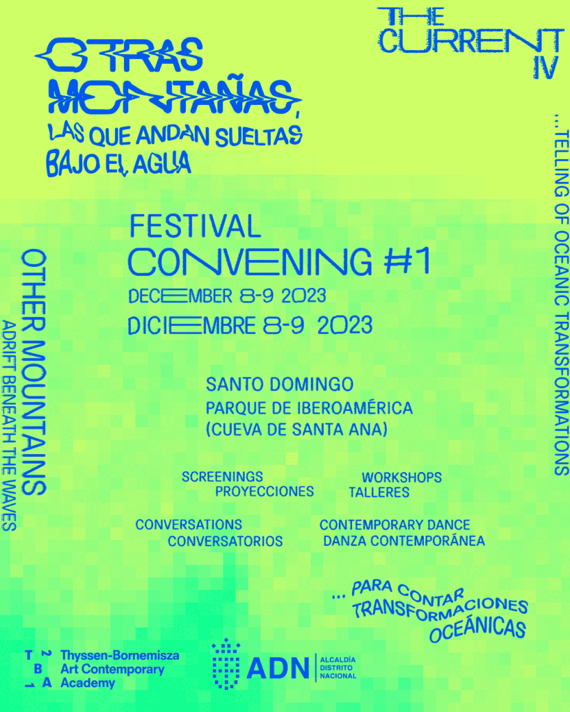 Distrito Nacional, República Dominicana. Comisariada por Yina Jiménez Suriel, The Current IV: El Caribe “otras montañas, las que andan sueltas bajo el agua” es la cuarta edición del programa de becas curatoriales de TBA21–Academy, The Current, que cultiva prácticas transdisciplinarias y el intercambio de ideas en torno al océano y su comprensión. Este ciclo se centrará en identificar, estudiar y difundir el conocimiento de las estrategias y herramientas estéticas generadas a partir de la experiencia cimarrona en el Caribe, con la intención de contribuir a los procesos emancipatorios en la región que han buscado acercar a sus habitantes al océano.