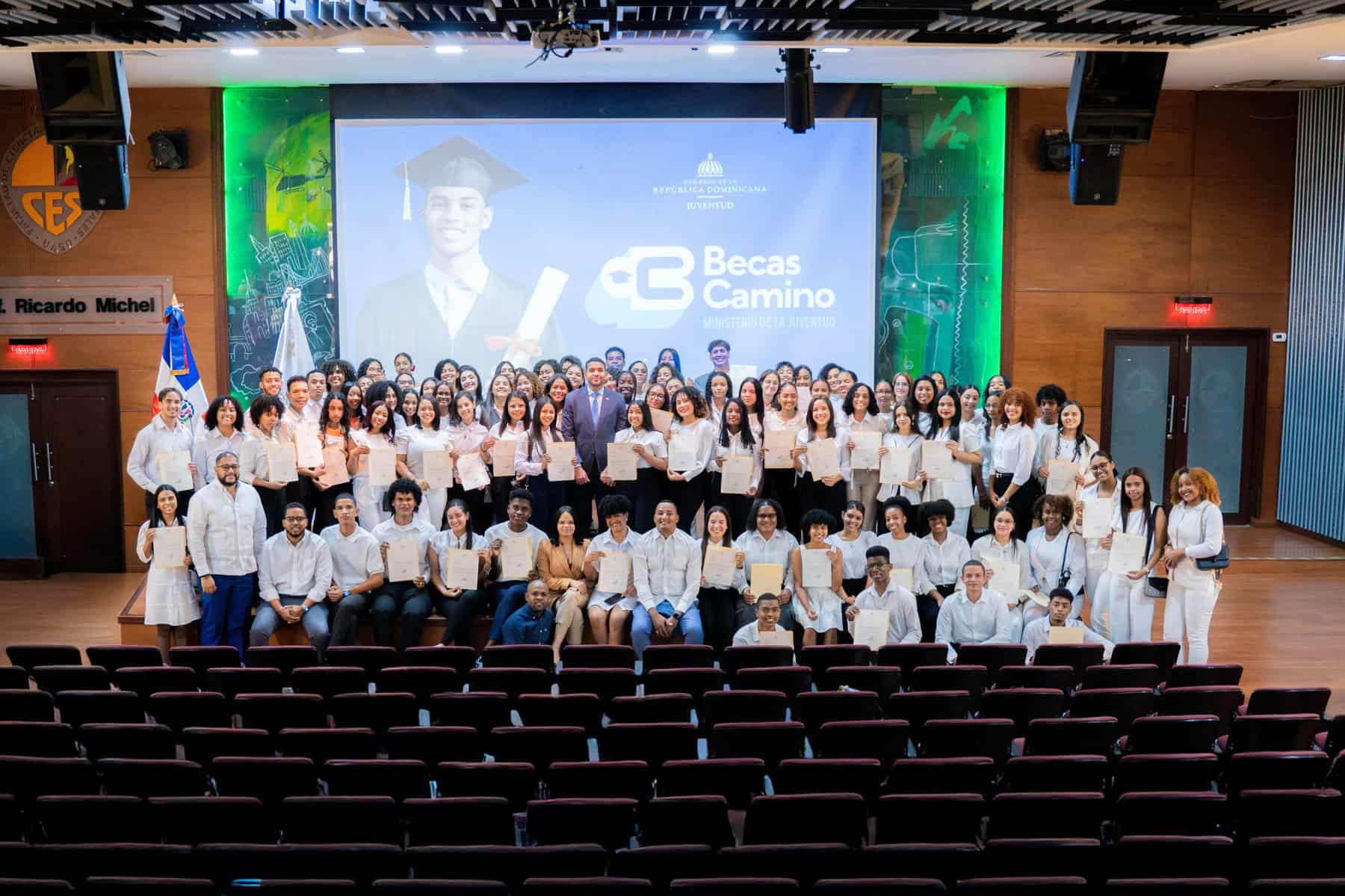 El Ministerio de la Juventud, como parte de su compromiso con la educación y el desarrollo de la juventud dominicana, otorgó el beneficio del programa de “Becas Camino” a 150 estudiantes por haber obtenido el Diploma de Máxima Excelencia Académica. La ceremonia, encabezada por el ministro Carlos Valdez, se celebró en el Paraninfo Ricardo Michél de la Facultad de Economía de la Universidad Autónoma de Santo Domingo (UASD).