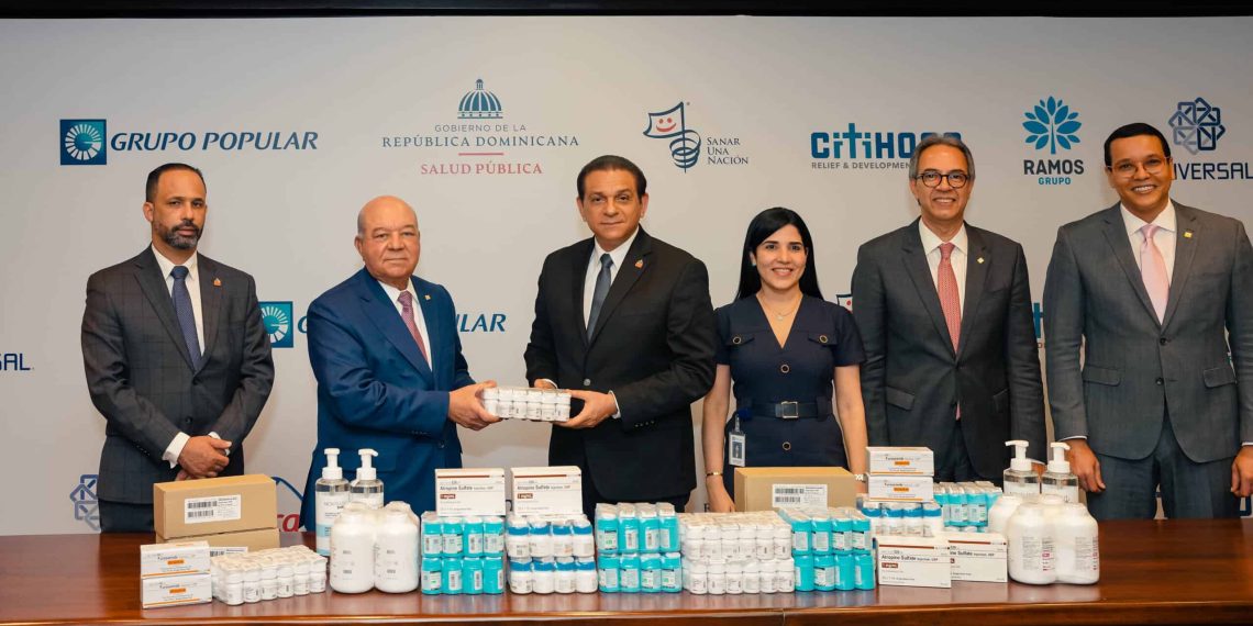 El anuncio de la entrega de los medicamentos fue realizado en una actividad celebrada en la Torre Popular, sede del Grupo Popular y del Banco Popular Dominicano, entre otras filiales.