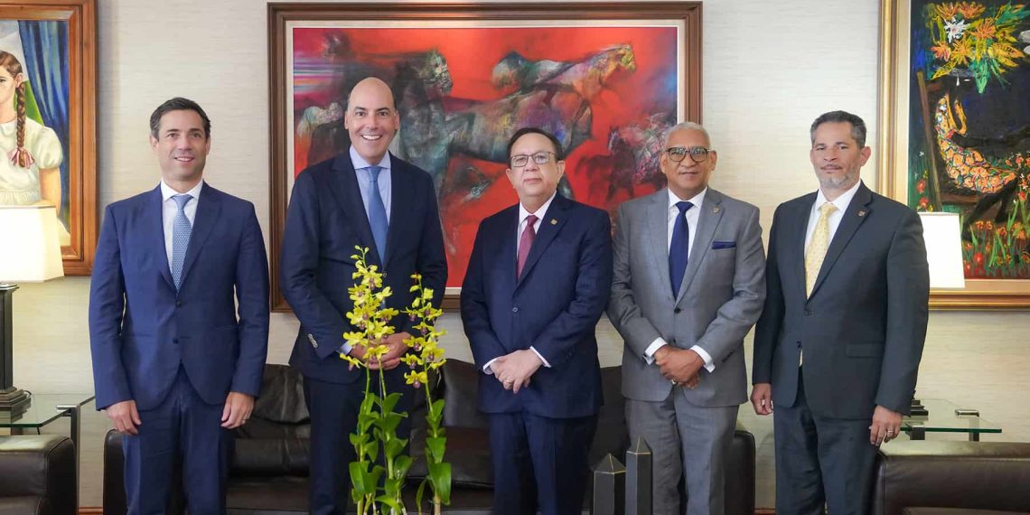 Santo Domingo, República Dominicana. El gobernador del Banco Central de la República Dominicana (BCRD), Héctor Valdez Albizu, recibió la visita de altos ejecutivos de Scotiabank, en las personas de Francisco A. Aristeguieta, director de Grupo Banca Internacional, y Gonzalo Gil, gerente general en la República Dominicana.